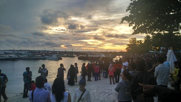 Pengunjung padati Pantai Kelayang untuk saksikan gerhana matahari (Wisnu/detikcom) |