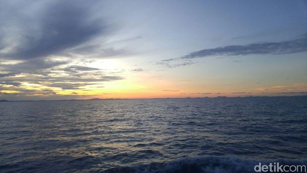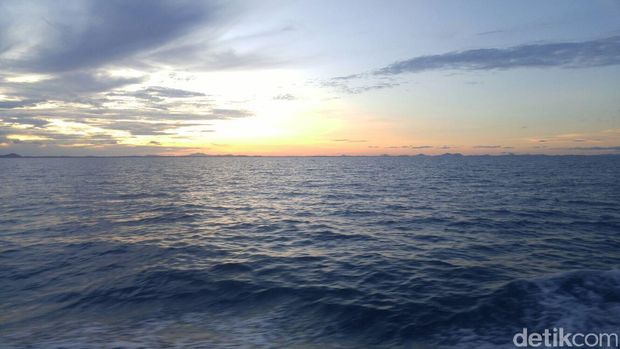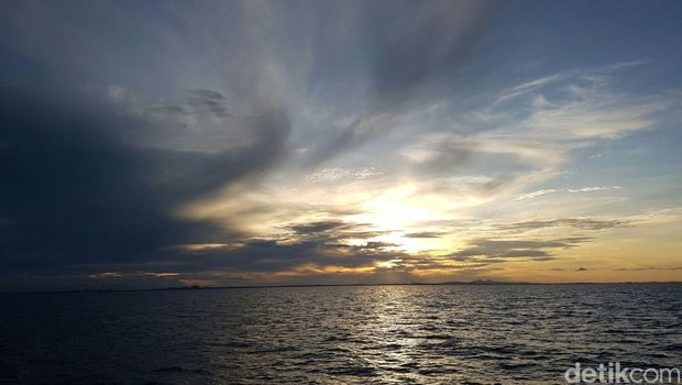Pantauan dari Kapal Bakamla di selat Gaspar, Belitung, Rabu (9/3/2016), awan masih menggelayut di langit. Matahari hanya terlihat sebagian. Terutama bagian atas.