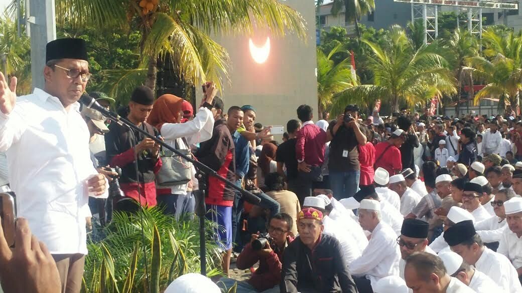 Peristiwa Gerhana Matahari ini tak ubahnya seperti momen Hari Raya Shalat Idul Fitri, saat masyarakat salat gerhana di tanah lapang yang dihadiri puluhan ribu umat Islam.