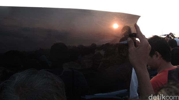 Pantauan detikcom, sejumlah warga membawa kaca film mobil agar dapat melihat detik-detik gerhana secara bersama-sama, Rabu (9/3/2016). Penggunaan kaca film ini sebenarnya sama juga dengan kacamata yang dibagi-bagikan kepada warga. Hanya saja, kehadiran sekelompok orang tersebut menarik perhatian.