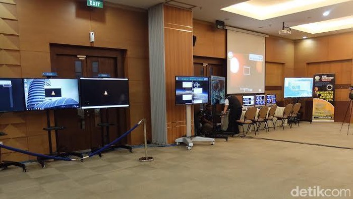 Di ruangan BMKG sendiri tampak 7 kota yang dilalui gerhana matahari total terpampang di 7 layar. Selain itu, BMKG juga menampilkan peta cuaca serta gempa.