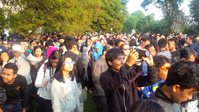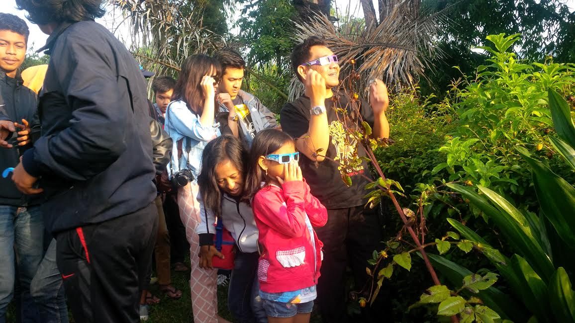 Sekitar 400 kacamata khusus gerhana yang disiapkan Bosscha habis. "Awalnya kita sediakan 100 kacamata, namun melihat animo banyak begini, kita siapkan lagi 300. 100 free, 300 dijual," ujar Astronom Bosscha Evan Irawan Akbar.