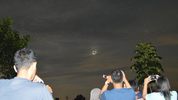 Tadi pagi, gerhana di Mukomuko dimulai pukul 06.19, daerah pertama yang dilintasi fenomena alam langka ini. Puncak gerhana matahari total terjadi pada 07.19 WIB selama 1 menit : 43 detik. (okt/okt)