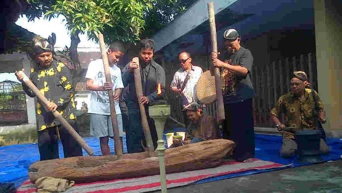 Bedanya, penabuh lesung di sini harus wanita yang sudah tidak perawan karena sudah punya pengalaman dalam mengaruhi hidup. Sementara bagi wanita yang sedang hamil, diwajibkan menggigit. "Kreweng" atau pecahan tembikar.
