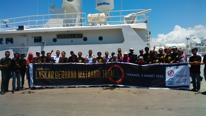 Selesai makan siang, Laskar Gerhana detikcom bersiap menjelajahi Bumi Cengkeh ini. Sayonara Laskar Gerhana dengan kru kapal KN Kuda Laut dan KN Gajah Laut ditutup dengan berfoto bersama.