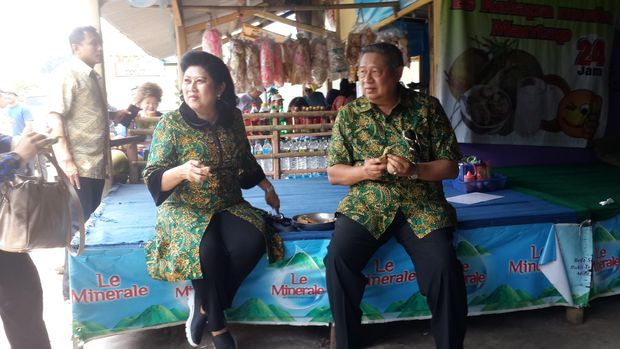 SBY dan Ani Yudhoyono saat berada di Nagreg dalam rangkaian Tour De Java, Rabu (9/3/2016). Foto: Elza Astari/detikcom