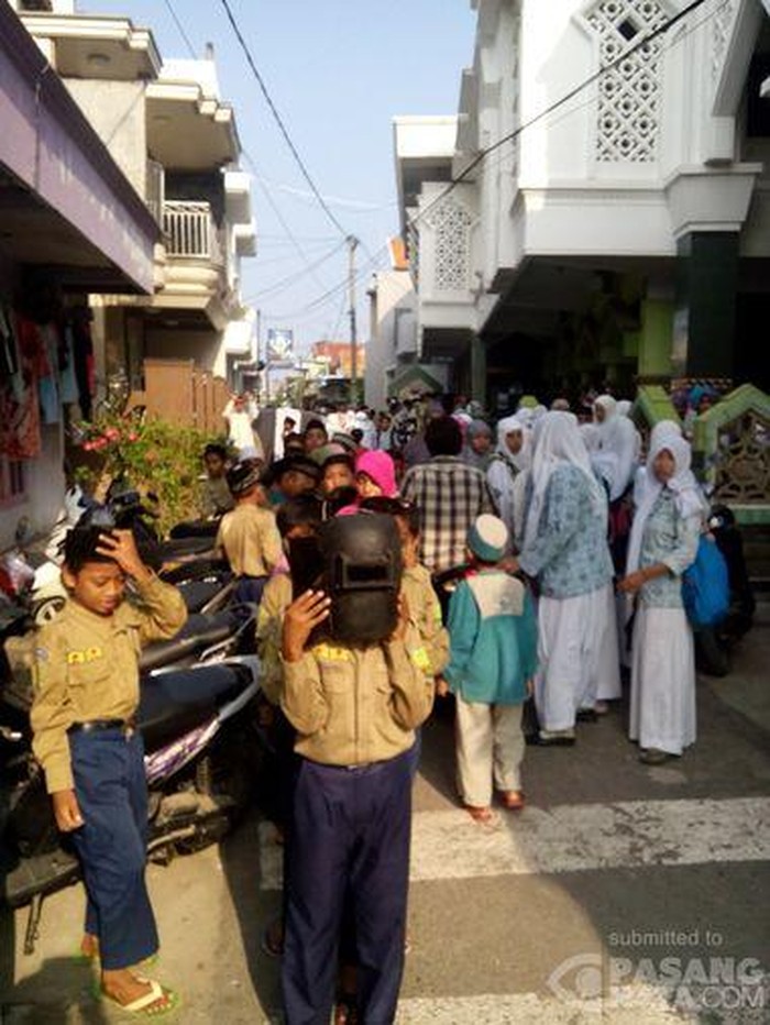 Misalnya, para santri di pondok pesantren al-Munawwarah, Brondong, Lamongan, Rabu (9/3/2016). Ada sekitar 500 santri dari perguruan Muhammadiyah itu baik Madrasah Tsanawiyah (setingkat SMP), Madrasah Ibtidaiyah (setingkat SMA), dan SMK yang bergantian melihat gerhana menggunakan topeng las.