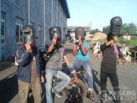 "Tadi di tempat kerja, ya ada empat (topeng las)," ucap Supratman yang juga mengirimkan fotonya ke pasangmata.com.