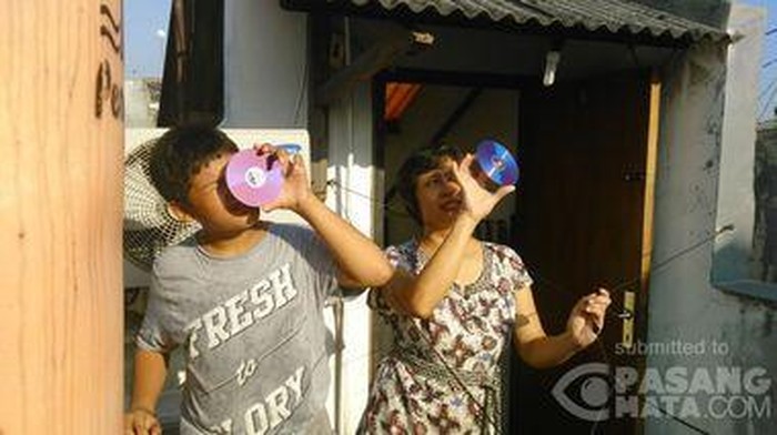 Mereka yang tak punya alat bantu mengakalinya dengan memakai berbagai benda yang ada di rumah. Namun kebanyakan alat bantu melihat gerhana ini sebenarnya tak aman untuk mata.