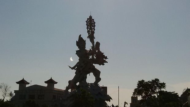 Bara sendiri berhasil mengabadikan gerhana matahari dengan ponselnya. Dia memotret matahari yang tertutup bulan di langit Bali dengan latar belakang patung Dewa Ruci.