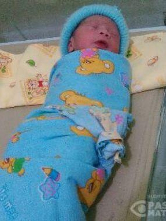 Bayi lucu yang terlahir sehat itu kini masih berada di rumah sakit. Dia masih tampak terbalut kain dan penutup kepala berwarna biru. Selamat kek!