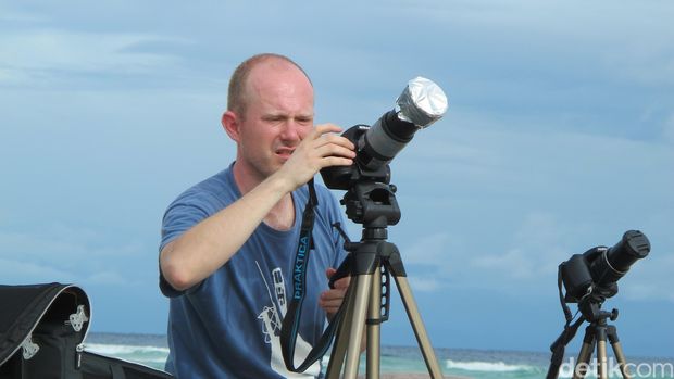 "Saya sudah pernah mengalami sebelumnya waktu di Jerman. Wah itu kacau. Total cloud for total eclipse," kata Jans, mengomentari cuaca Maba yang diselimuti awan.