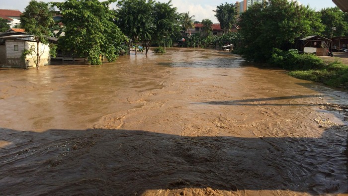 Menurutnya ketinggian air masih dalam batas normal atau belum meluap sampai di atas tanggul.