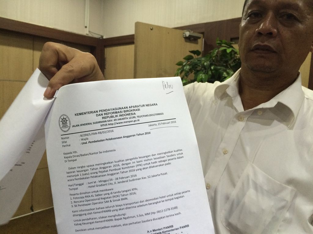 "Namun dari sosialisasi tersebut, kepala daerah dimintai duit Rp 5-10 juta. Tentunya ini akan merusak citra KemenPANRB padahal itu tidak benar semua," imbuhnya.