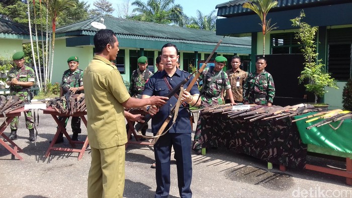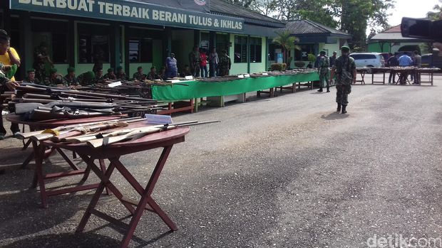 "Senjata api tersebut diserahkan melalui Koramil yang tersebar di dua kabupaten. Diserahkan dalam waktu beberapa minggu terakhir," ujar Komandan Kodim 0420/Sarolangun Bangko, Letkol Inf Budiawan Basuki, Kamis (17/3/2016).