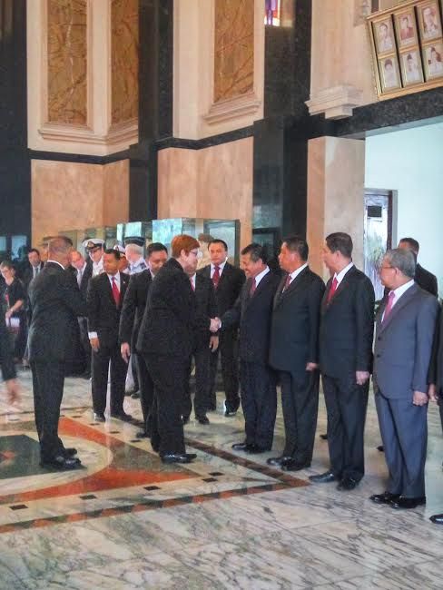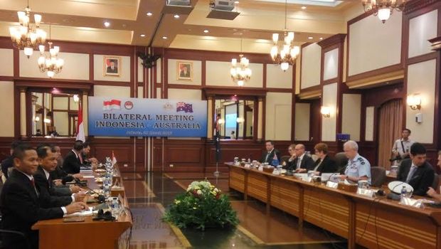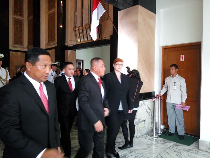 Pertemuan diselenggarakan di kantor Kementerian Pertahanan (Kemhan), Jakarta Pusat, Senin (21/3/2016). Sekitar pukul 08.00 WIB Menhan Australia Marise Ann Payne beserta jajarannya tiba di Kemhan, Jl Medan Merdeka Barat.