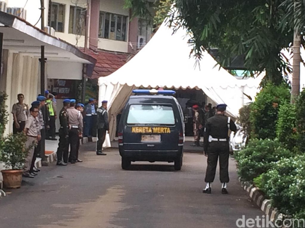 Begitu tiba, 13 peti jenazah langsung dibawa ke Ruang Forensik RS Polri Kramat Jati, Jakarta Timur, Senin (21/3/2016). Jenazah dibawa dengan peti putih dilapisi kain bendera merah putih.