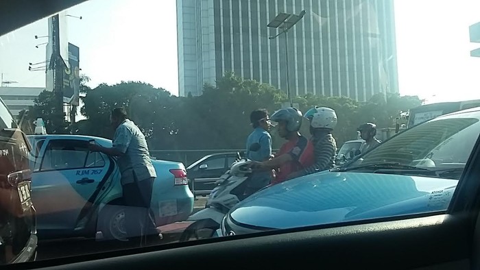 "Taksi Blue Bird menyetop taksi Blue Bird lain yang lagi ada penumpang. 2 Sopir tersebut teriak-teriak dan menggedor-gedor taksi Blue Bird lain dan teriak, turunin sekarang! Turunin penumpang nya! Keluar. Penumpang yang di dalam mobil adalah wanita paruh baya. Dan alhasil motor dan mobil di sekitarnya menyoraki 2 sopir ini," jelas Silvia menuturkan kesaksiannya dalam surat elektronik ke redaksi@detik.com.
