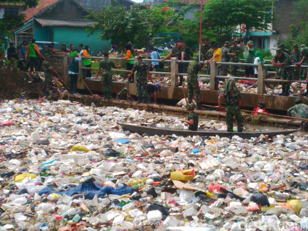 Pantauan detikcom di lokasi, Kamis (24/3/2016), personel TNI berseragam loreng menggenggam alat-alat manual seperti bambu, kayu, garpu pengait, dan jaring. "Kegiatan ini merupakan program serbuan teritorial Kodim 0618/BS Kota Bandung. Kami bekerja sama dengan Pemkot Bandung dan warga setempat membersihkan serta mengangkut sampah yang menggunduk di sungai ini," ucap Kaur Komsos Kodim 0618/BS Kota Bandung Kapten Kav Abdul Ghofur.