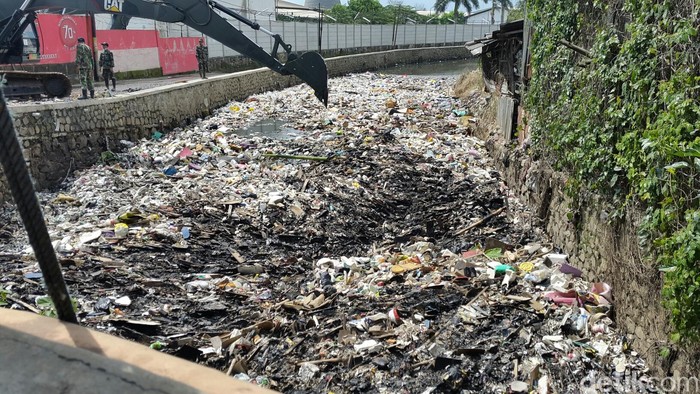 Satu eskavator terus berjuang mengangkut sampah yang ada di sungai. Sekitar 15 menit detikcom berada di lokasi, ada dua truk besar pengangkut sampah yang bergerak ke TPA dan satu truk kosong yang sedang diisi sampah.