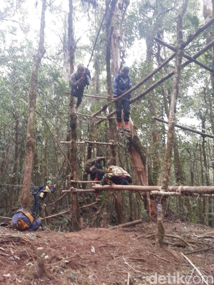 Dari foto yang diperoleh detikcom, kelompok Santoso melakukan kegiatan tadrib dengan berlatih di halang rintang tersebut. Mereka bergelantungan di atas seutas tambang atau berlatih keseimbangan di antara tiang kayu yang dibentuk seperti esteger.