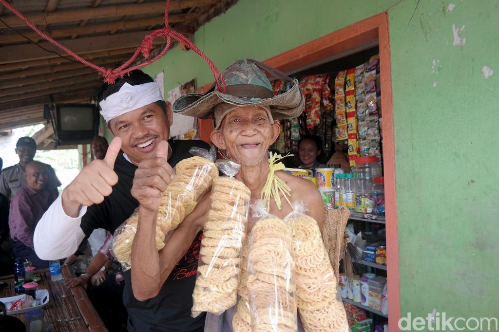 Dedi yang kagum dengan sosok mandiri Abah Kadung yang telah memasuki usia senja itu pun langsung memberikan sejumlah hadiah yang dibeli secara spontan di warung tempatnya beristirahat.