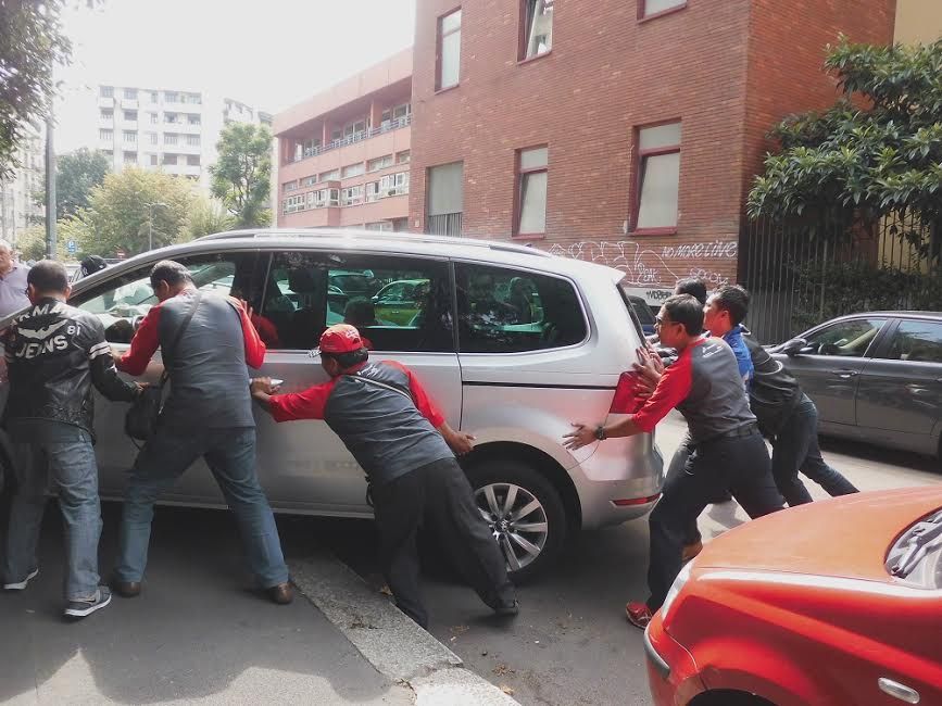 Selain soal kemacetan dan ketertiban di jalan, urusan lainnya yang merepotkan di negeri Pizza itu urusan parkir. Tak beda dengan Jakarta, kadang didapati mobil yang parkir hingga trotoar dan jalur hijau. Untuk yang parkir di trotoar, selain mobil, ada juga sepeda motor.