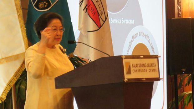 Megawati berpidato di acara Konvensi Haluan Negara (Foto: Bagus Prihantoro/detikcom)