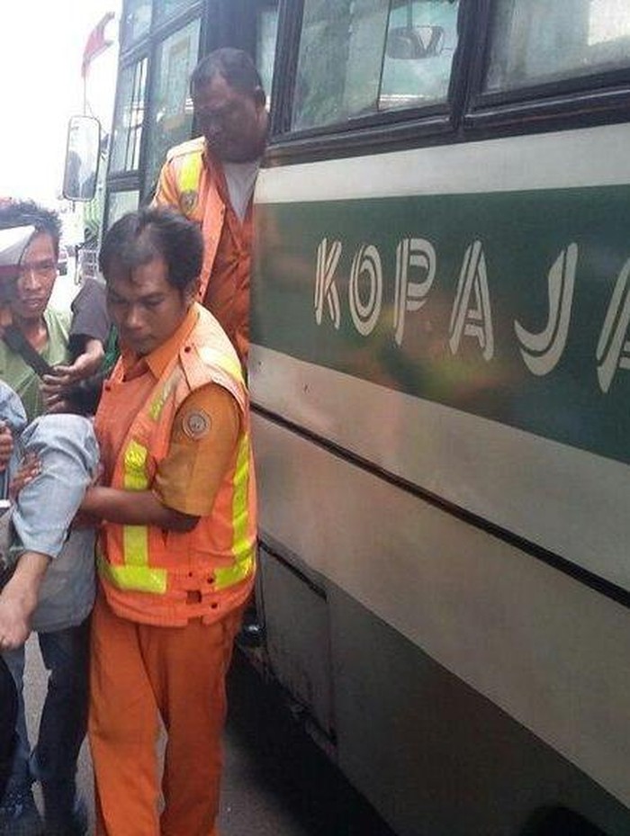 "Pengemudi Bus Kopaja tutup usia di KM 33 Bambu Apus arah Jati Warna, sudah dipindahkan ke RS Kramat Jati," tulis akun Twitter @TMCPoldaMetro. (rvk/trw)