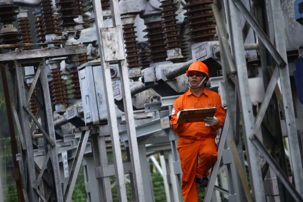 Petugas melakukan pemeriksaan pada Gardu Induk di Pembangkit Listrik Tenaga Air (PLTA), Plengan, Jawa Barat (Grandyos Zafna/detikcom)