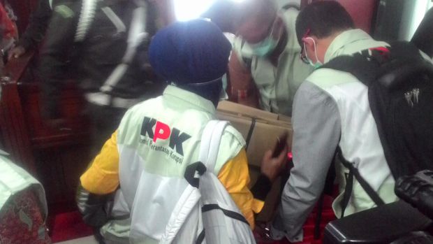 Tak lama kemudian, perwakilan KPK ini keluar menyambangi rekan-rekannya yang menunggu. Setelah itu, mereka bersama-sama melakukan penggeledahan di lantai 2 gedung.