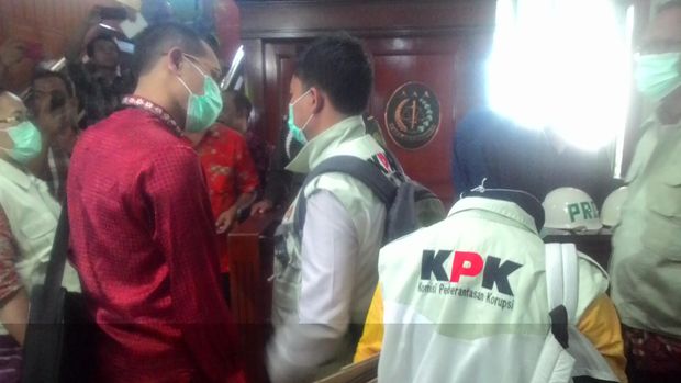 Tim yang hampir seluruhnya mengenakan rompi cokelat dengan tulisan 'KPK' ini lantas menunggu sebentar di salah satu ruang yang ada di bagian depan. Perwakilan tim lantas masuk ke ruang Wakajati M Rum.