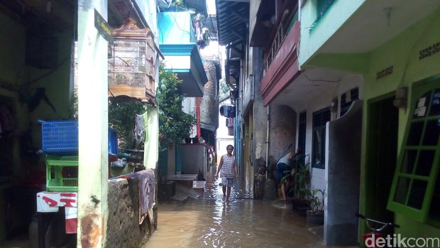 Lorong-lorong jalan yang direndam banjir. Foto: Jabbar Ramdhani/detikcom |