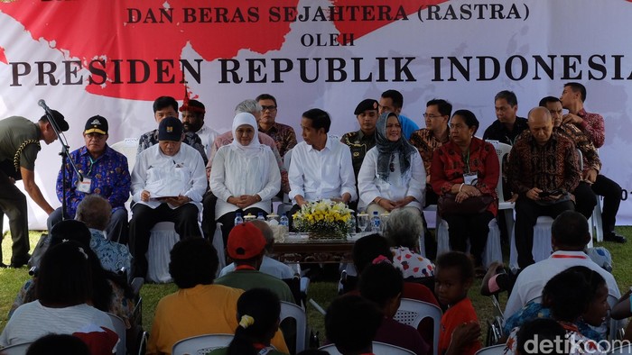 Penyerahan bantuan secara simbolis dilakukan Jokowi di Desa Sanggeng, Kecamatan Manokwari Barat, Manokwari, Selasa (5/4/2016). Presiden didampingi Mensos Khofifah Indar Parawansa.