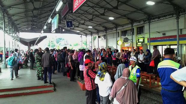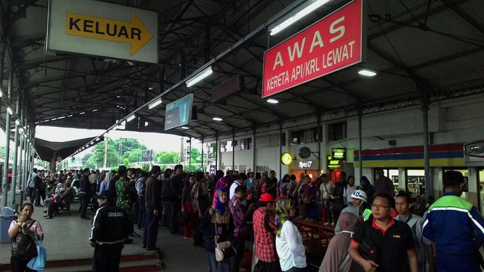 Berdasarkan foto yang dikirim kontributor pasangmata, Flora Febrianindya, Rabu (6/4/2016), tampak ratusan penumpang berdiri di sekitar peron. Tua-muda menunggu kereta yang akan mengangkut mereka ke tempat tujuan.