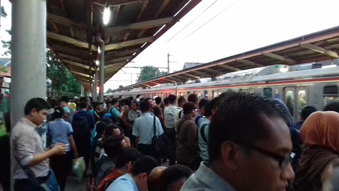 Penumpukan penumpang di Stasiun Cawang (Chico/detikcom) |