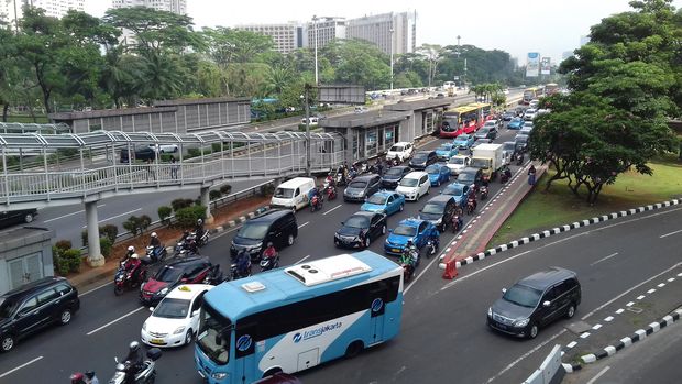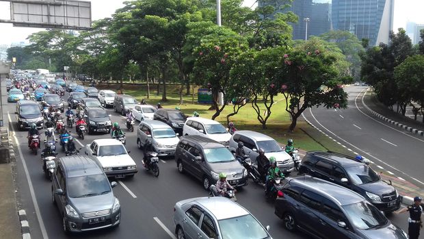 Kondisi jalan dari arah Bundaran HI menuju Patung Pemuda Senayan atau Bundaran Senayan juga terlihat ramai lancar. Kondisi yang sama juga terlihat dari Grogol menuju Bundaran HI.