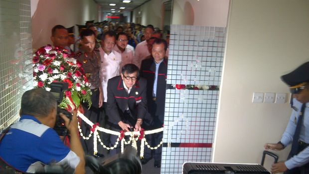 Menkum HAM Yasonna Laoly saat meresmikan Sekretariat PORA. Foto: Ahmad Masaul K/detikcom |
