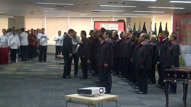 Menkum HAM Yasonna Laoly saat meresmikan Sekretariat PORA (Foto: Ahmad Masaul K/detikcom) |