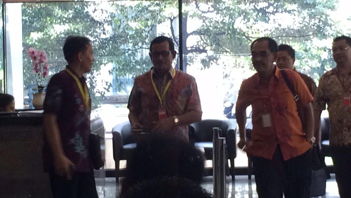 Babul Khoir datang di Gedung KPK, Jl HR Rasuna Said, Jakarta Selatan, Jumat (8/4/2016) sekitar pukul 13.40 WIB. Ia tampak datang bersama lima orang lainnya yang semuanya mengenakan pakaian batik.