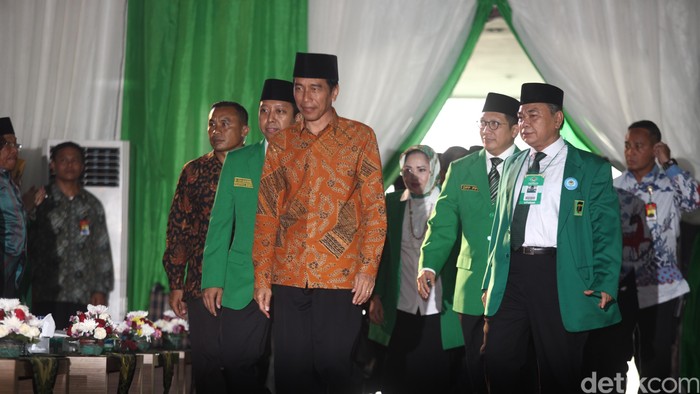 Begitu masuk ke ruangan acara, Jokowi disambut oleh Sekjen PPP Muktamar Bandung Romahurmuziy. Jokowi kemudian langsung menghampiri tokoh senior PPP Maimun Zubair atau Mbah Moen untuk bersalaman dan mencium pipi kanan dan kiri.