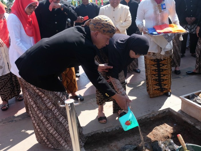 Bupati Yoyok Riyo Sudibyo dalam acara peletakan batu pertama