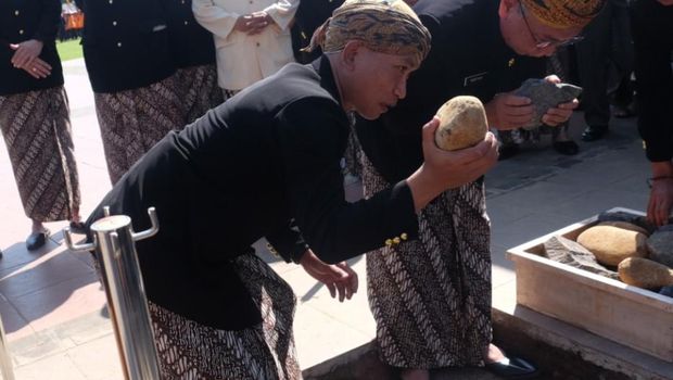 Bupati Yoyok Riyo Sudibyo dalam acara peletakan batu pertama |