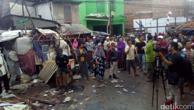Di tengah hujan, puluhan warga tersebut masih berkumpul membentuk barisan untuk menolak pembongkaran. Beberapa ibu-ibu juga menangis karena lokasi mereka hendak ditertibkan.