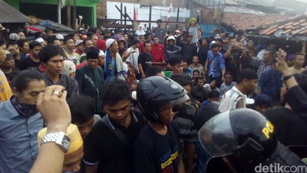 Kapolsek Penjaringan menenangkan warga (Foto: Jabbar/detikcom) |