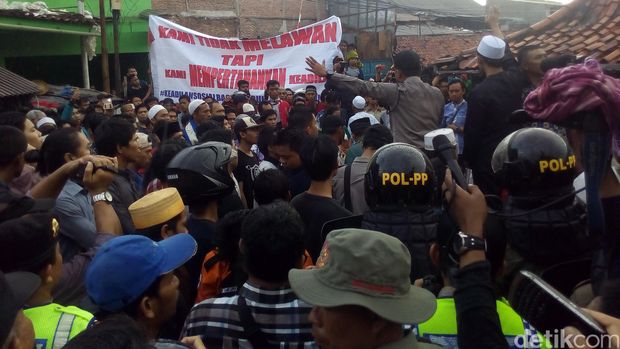 Setelah ditenangkan oleh AKBP Rudi, warga yang tadinya berdiri lalu duduk di jalan masuk ke Pasar Ikan. Mereka kemudian berdialog dengan Kapolsek Penjaringan dan Camat Penjaringan.
