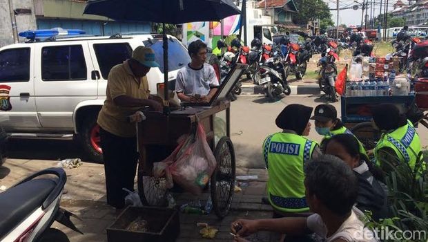 Mereka duduk-duduk sambil berbincang. Beberapa polisi yang lain juga berjaga tak jauh dari lokasi.