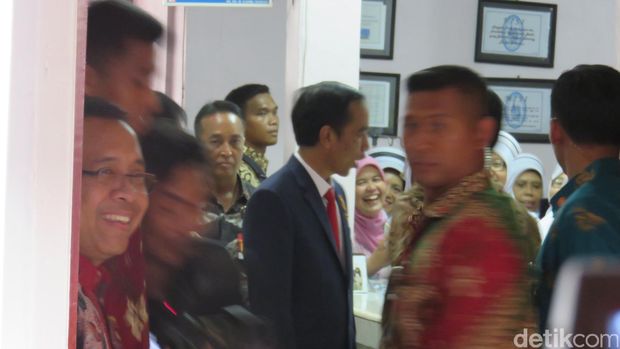 Ruangan itu kecil sehingga hanya Jokowi dan beberapa orang saja yang masuk. Cukup lama dia menengok pasien-pasien yang dirawat di ruangan tersebut.