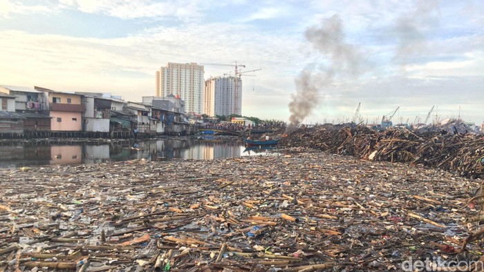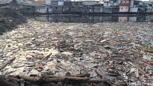 Dari pantauan di Kampung Akuarium terlihat kebanyakan sampah berupa kayu, bambu dan botol plastik. Bahkan air laut menjadi hitam akibat sampah yang menumpuk. Tak ayal pemandangan tersebut pun menjadi tontonan warga sekitar yang penasaran, salah satunya adalah Siti (36) yang datang dari Muara Baru bersama anaknya.