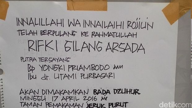 Sedangkan kondisi rumah yang terbakar itu saat ini dipasangi garis polisi. Rumah tersebut terlihat terbakar hebat di bagian depannya. Para tetangga juga terlihat berkumpul di depan rumah sambil berbincang mengenai kebakaran tadi malam itu. Di pagar rumah terpasang sebuah pengumuman atas pemakaman Riefky.